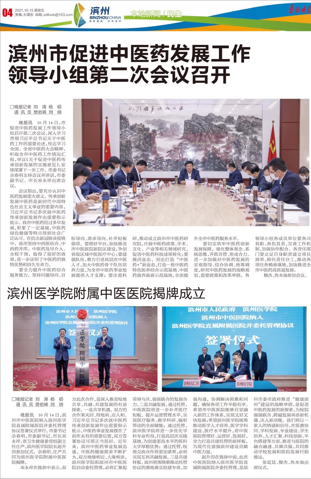 【鲁北晚报】滨州医学院附属中医院揭牌成立