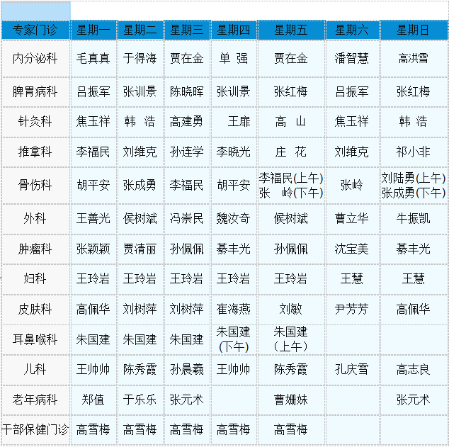 滨州市中医医院2021年11月1日-11月7日门诊值班表