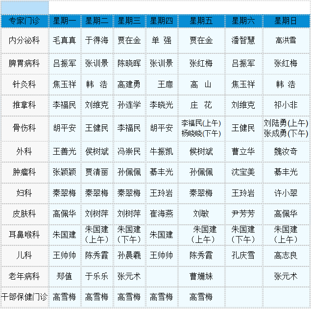 中医专家门诊值班表