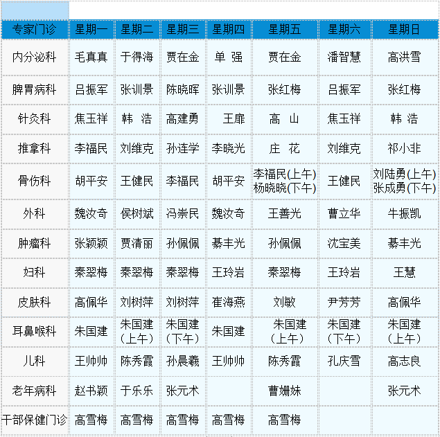 滨州市中医医院2021年11月22日-11月28日门诊值班表