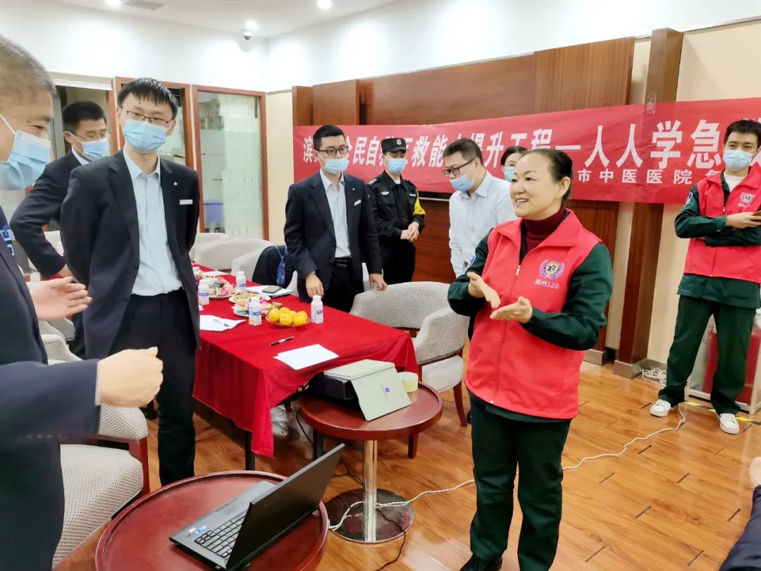 11月16日晚上,滨州市中医医院急诊科按照市120急救指挥中心工作安排,继续开展“全民自救互救能力提升工程——人人学急救”公益活动,在建设银行滨州学院支行普及自救互救知识技能,这也是急诊科今年开展的第10次急救知识公益宣传。