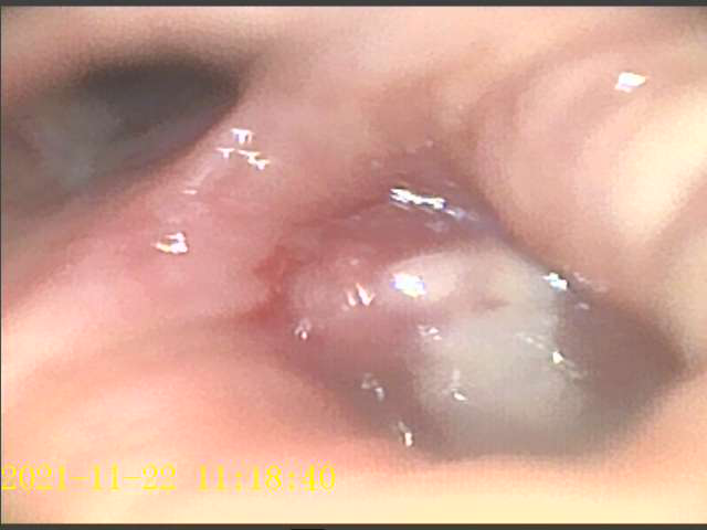 最终决定给患者行全麻下无痛气管镜检查,2021年11月22日张海勇主治医师、于得海副主任医师在麻醉手术科杜主任团队大力支持和密切配合下,病人在全麻下顺利完成了气管镜检查。