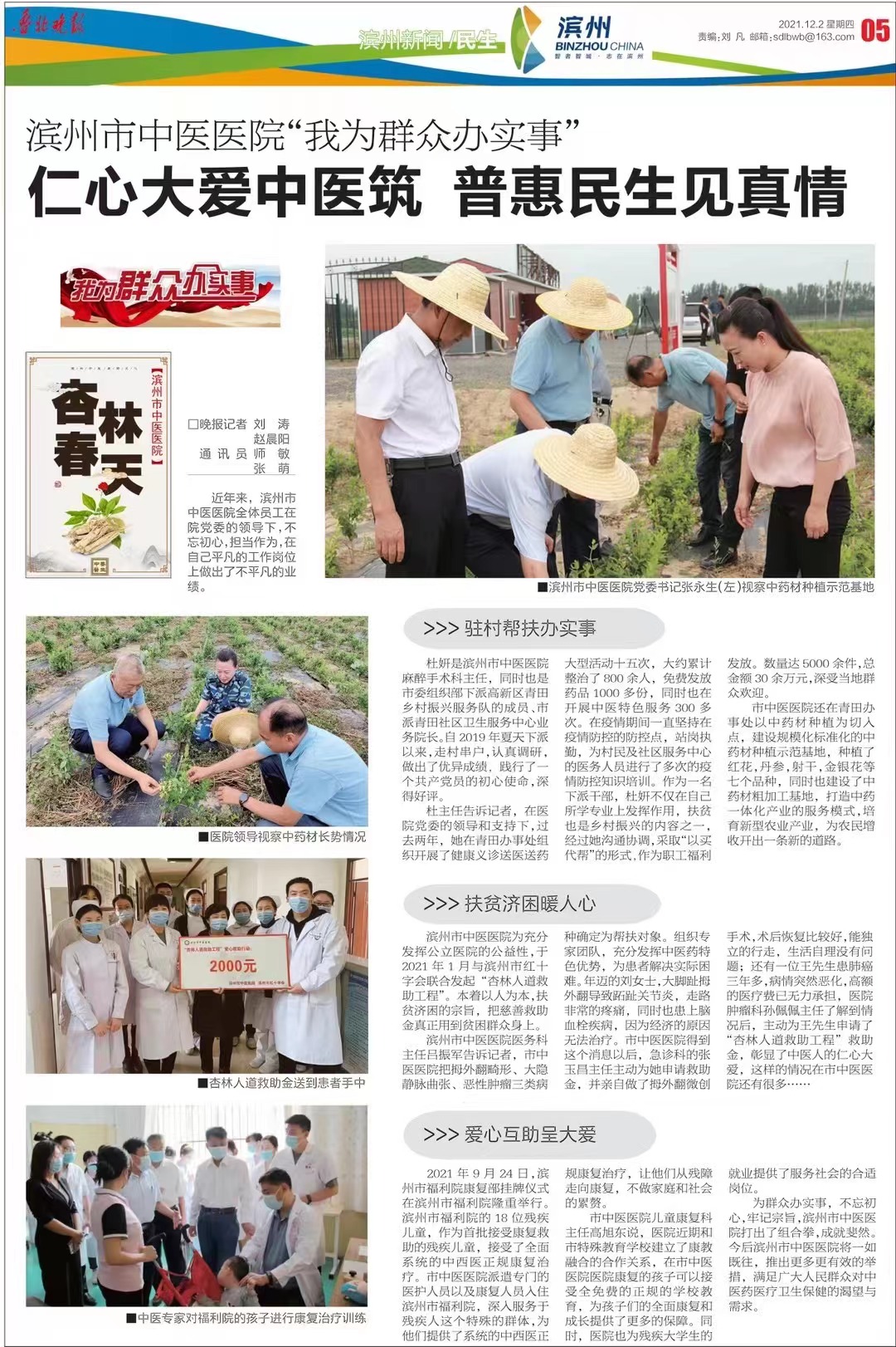 【鲁北晚报】滨州市中医医院“我为群众办事实”仁心大爱中医筑 普惠民生见真情
