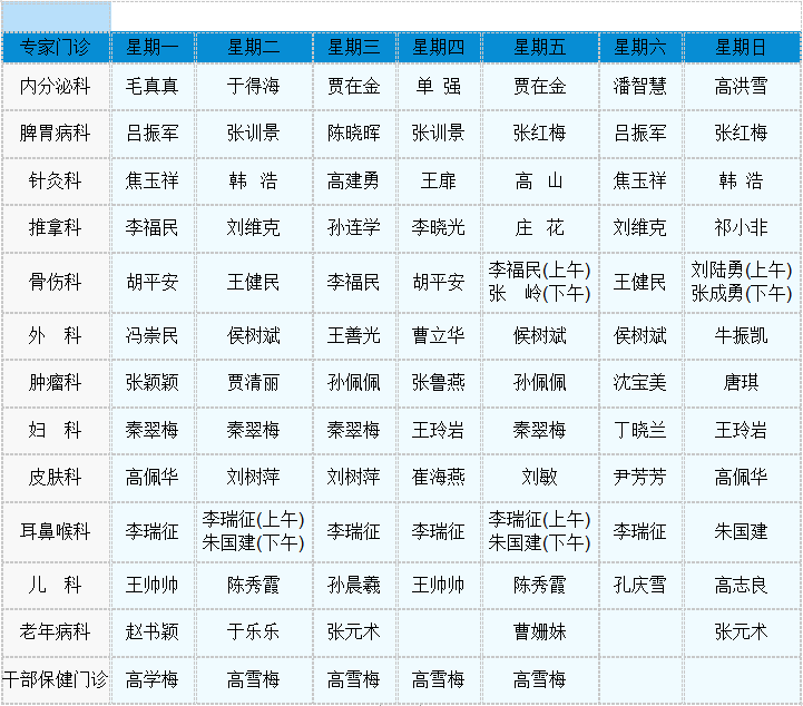 滨州市中医医院2022年1月10日-1月16日门诊值班表