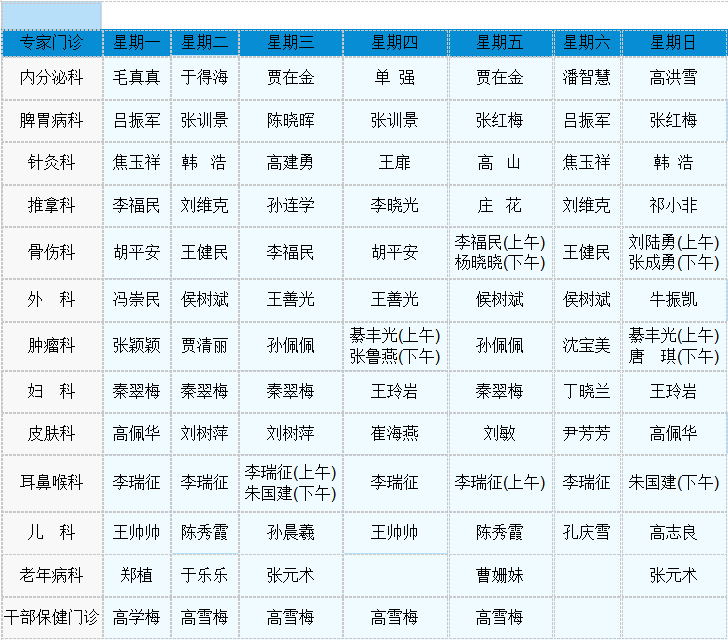 滨州市中医医院2022年1月17日-1月23日门诊值班表