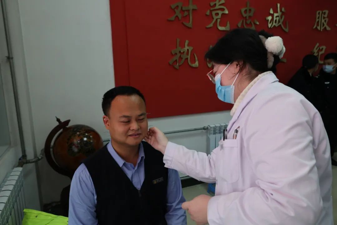 检查过程中,医护人员详细询问民辅警身体状况并记录检查结果,动态掌握健康状况,对生活习惯和饮食方面给予保健指导和建议。为前来咨询的民辅警检测血压、血糖指标等常规检查,并进行了针灸、耳穴压豆等中医疗法治疗,活动得到了现场民辅警的一致好评。
