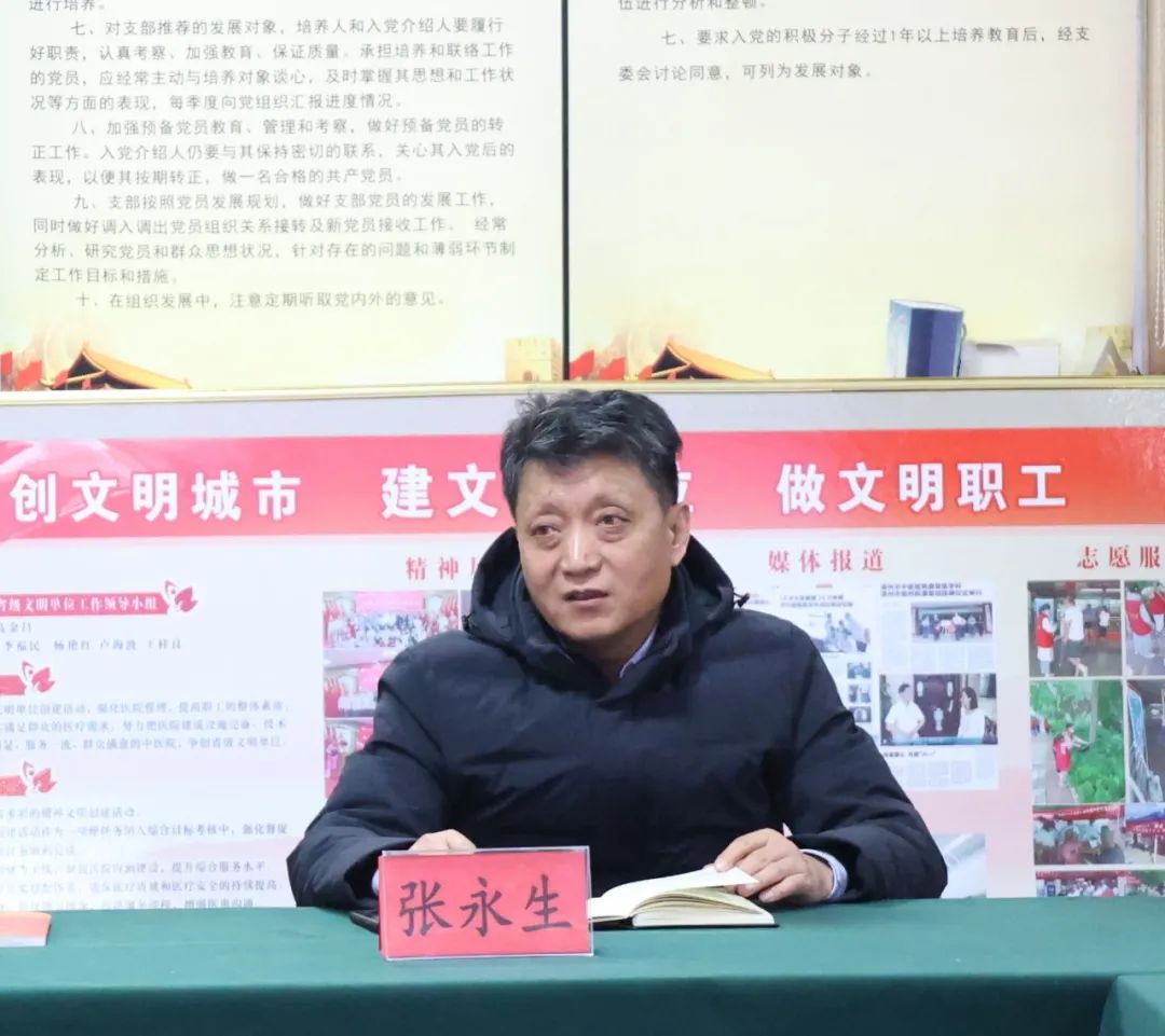 医院党委书记张永生同志出席支部会议并做点评发言。张书记指出,聚焦医院高质量发展,行政后勤党支部积极发挥基层党支部战斗堡垒作用,做出了积极努力。下一步,支部要充分认识新形势下党的新要求、新政策,担当作为,履行好时代新使命,积极与科室、与职工密切联系,听党员群众所想,急党员群众所需,解党员群众所难,让党组织生活更加接地气、有活力。十四五期间,聚焦国家中医特色重点医院、省级区域中医医疗中心项目建设,把党建工作与医院主责主业联系起来,秉承“以病人为中心,以质量为核心”服务宗旨,树立责任意识、大局意识、看齐意识,强管理补短板,全面提升医院综合服务能力,争创医院发展新局面。