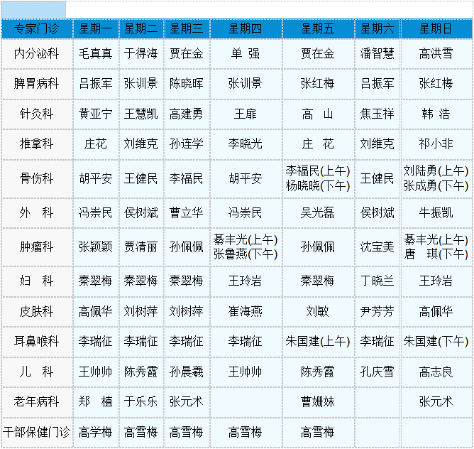 滨州市中医医院2022年2月14日-2月20日门诊值班表