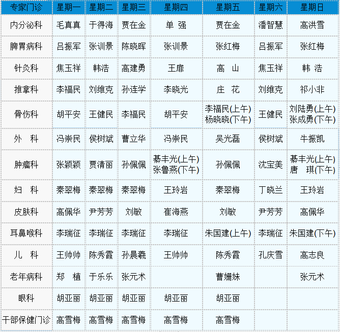 滨州市中医医院2022年2月28日-3月6日门诊值班表