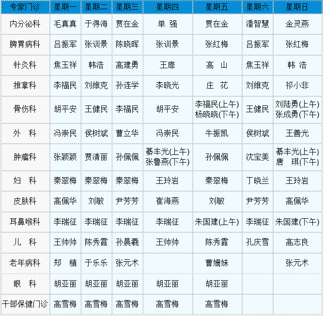 滨州市中医医院2022年3月14日-3月20日门诊值班表