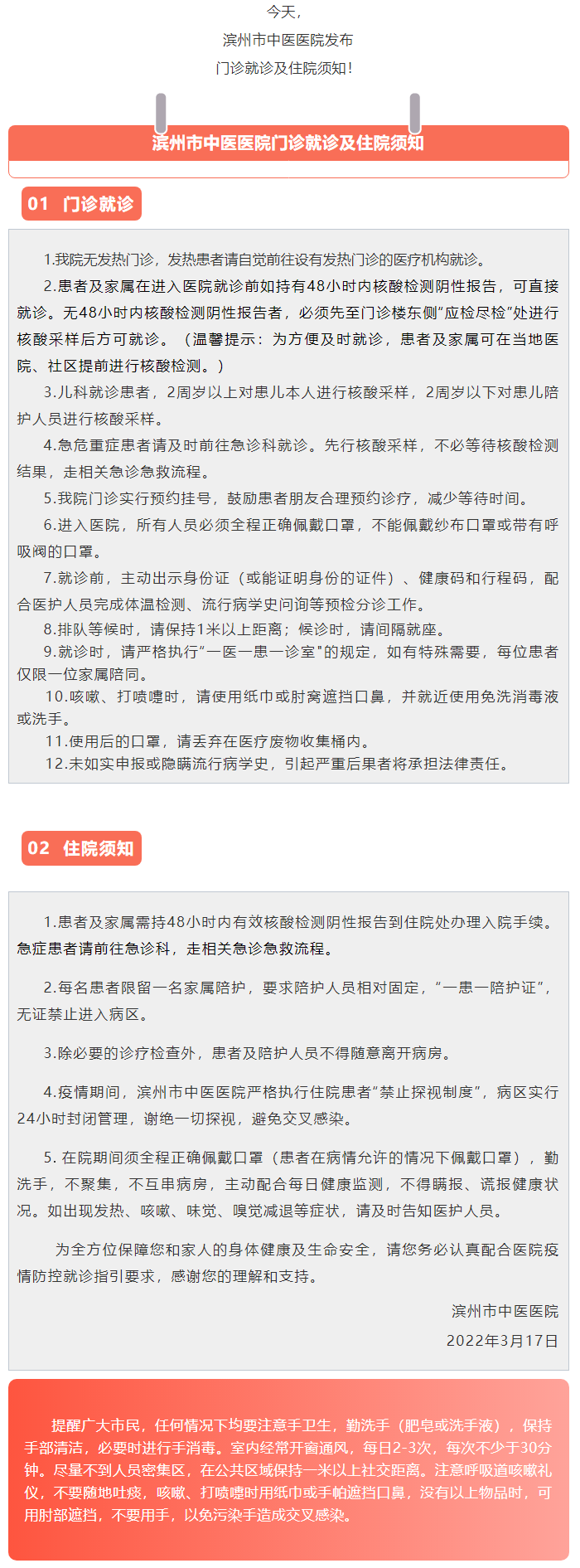 滨州市中医医院发布门诊就诊及住院须知!