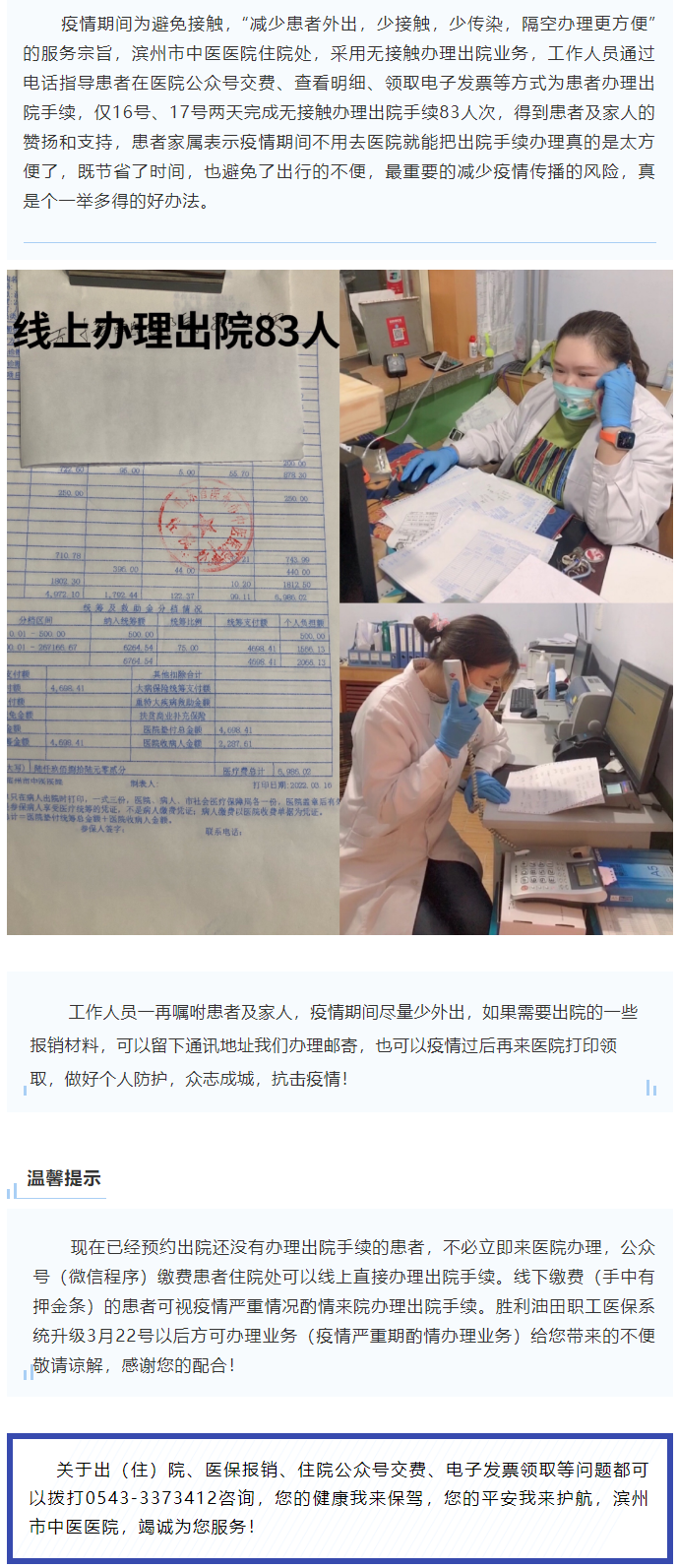 滨州市中医医院住院处采用无接触式出院 方便患者