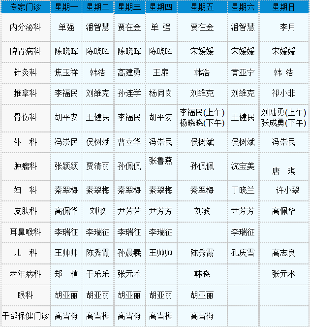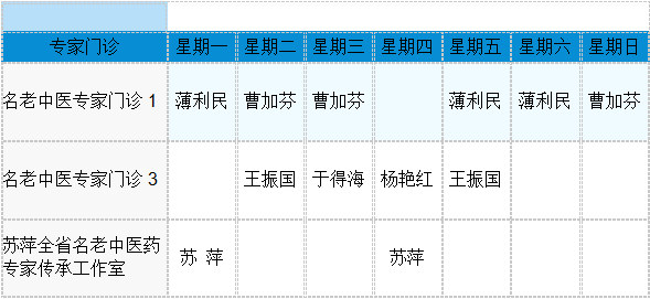 中医专家门诊值班表