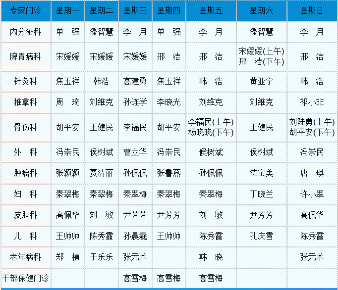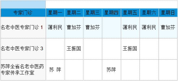 中医专家门诊值班表