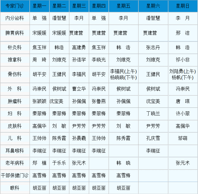 滨州市中医医院2022年4月18日-4月24日门诊值班表