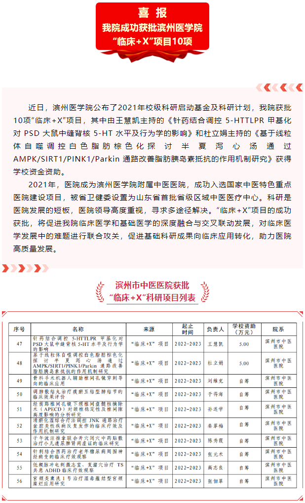 【喜报】我院成功获批滨州医学院“临床+X”项目10项