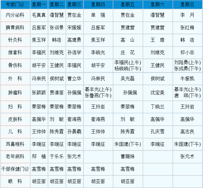 中医专家门诊值班表