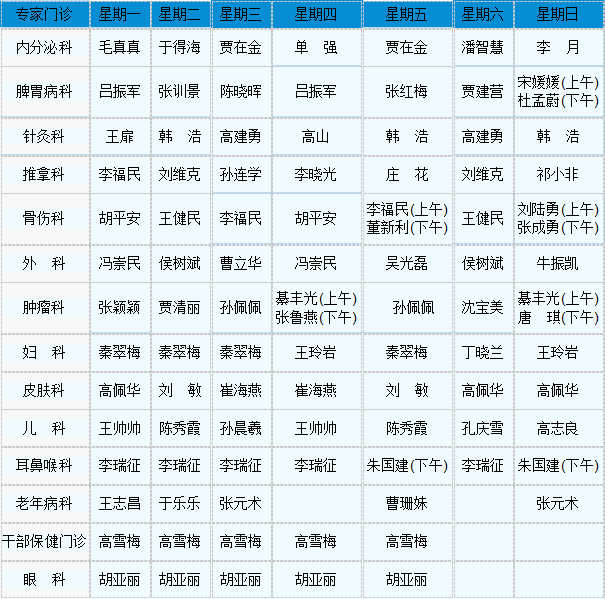 中医专家门诊值班表