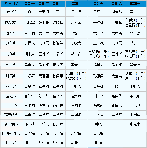 滨州市中医医院2022年5月30日-6月5日门诊值班表