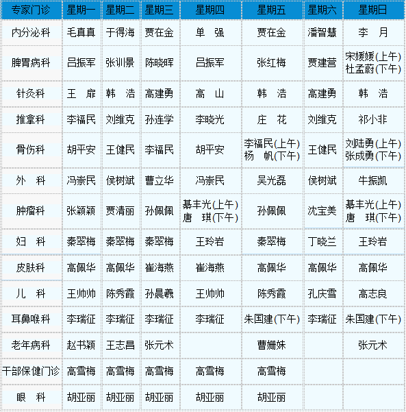 滨州市中医医院2022年6月6日-6月12日门诊值班表
