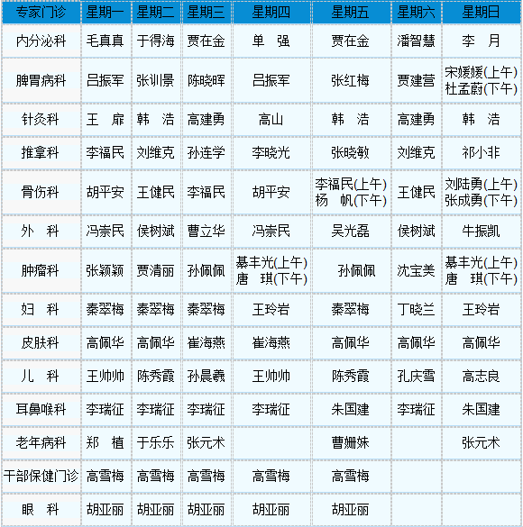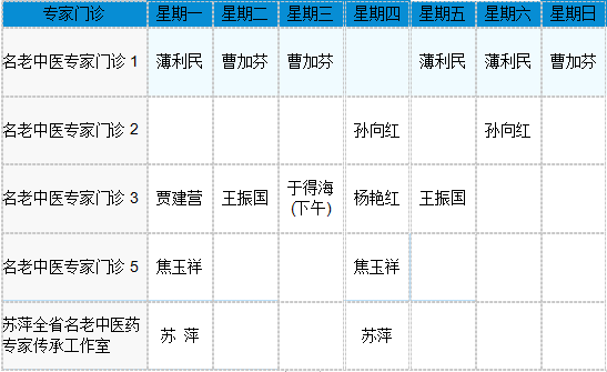中医专家门诊值班表