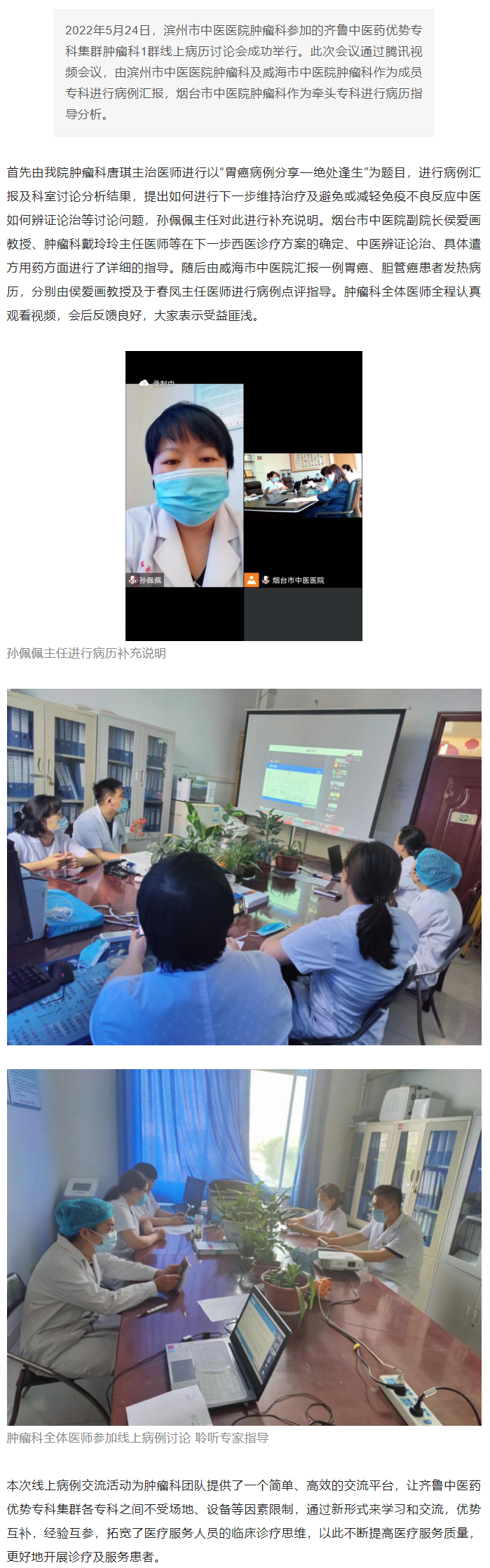 学术交流 | 强强携手 线上交流 齐鲁中医药优势专科集群肿瘤科1群线上病例讨论会成功举行
