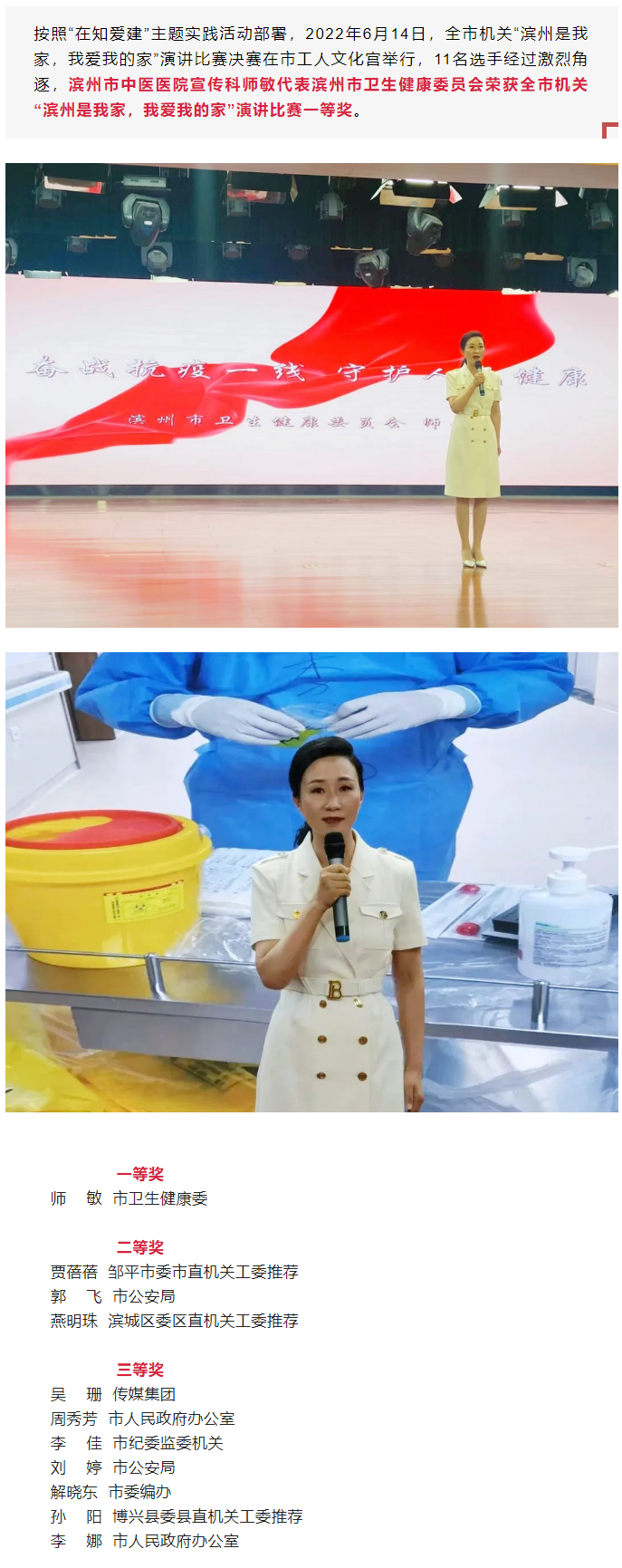 喜报 | 滨州市中医医院职工荣获全市机关“滨州是我家,我爱我的家”演讲比赛一等奖