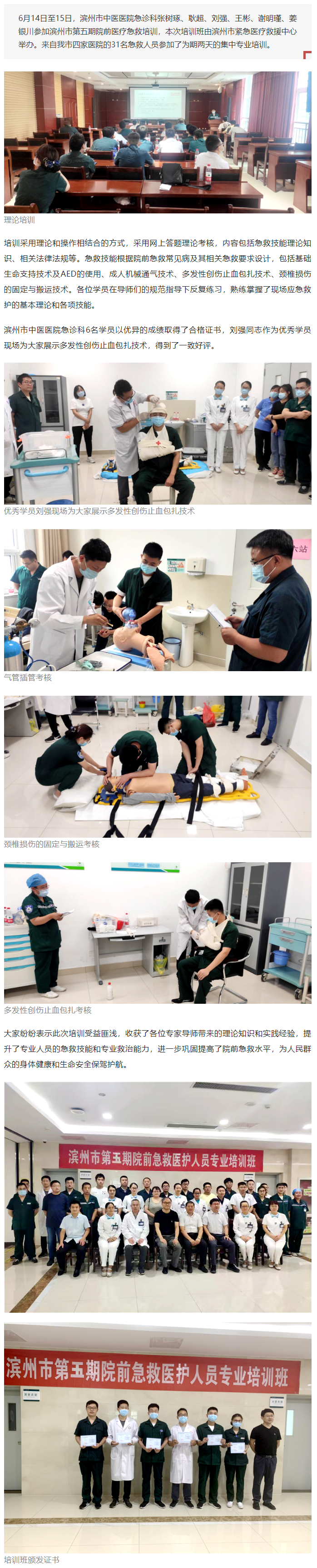 滨州市中医医院急诊科参加全市第五期院前急救培训
