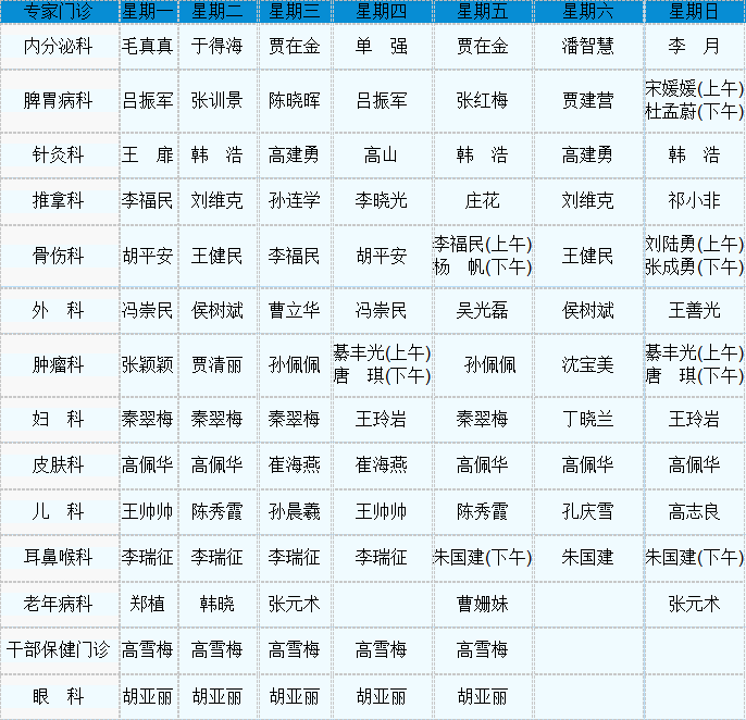 滨州市中医医院2022年7月4日-7月10日门诊值班表