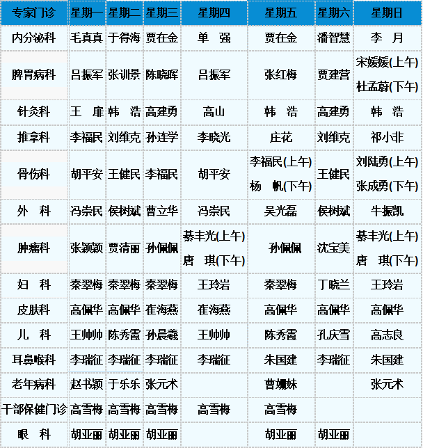 中医专家门诊值班表