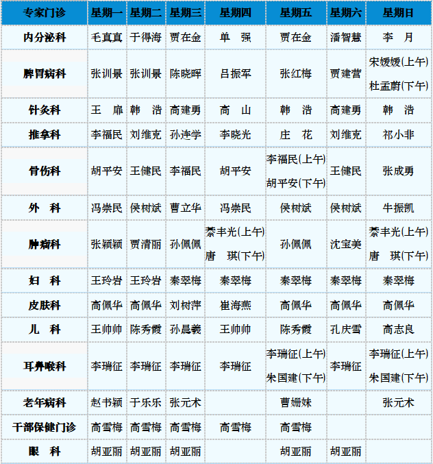 滨州市中医医院2022年8月1日-8月7日门诊值班表
