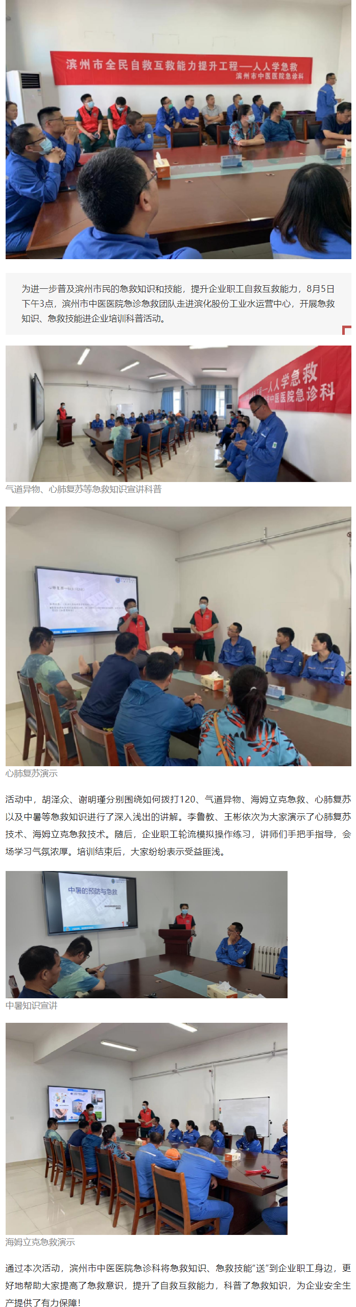 健康科普 | “六进”活动,“救”在身边——滨州市中医医院急诊科走进滨化股份工业水运营中心