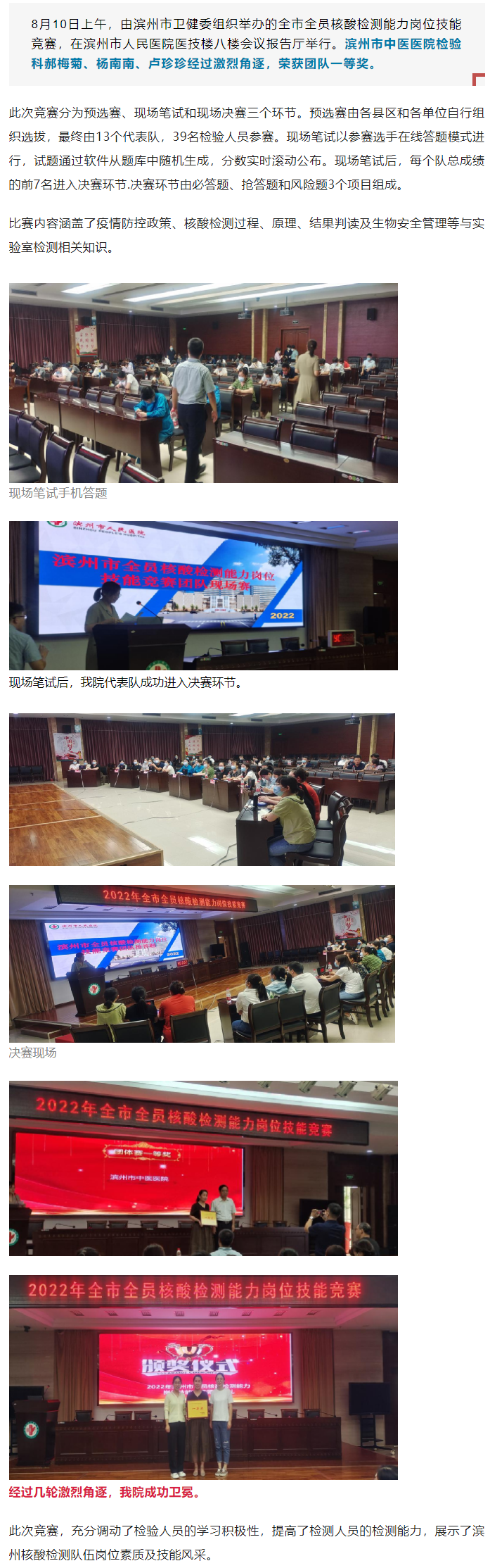 ​喜报 | 滨州市中医医院在全市全员核酸检测能力岗位技能竞赛中获得一等奖