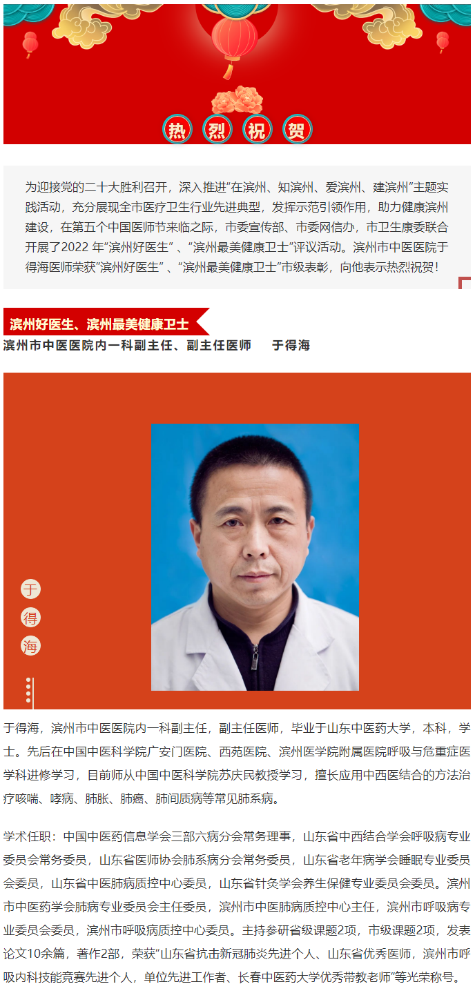 医师节特辑 | 喜报!滨州市中医医院于得海医师荣获“滨州好医生”、“滨州最美健康卫士”!