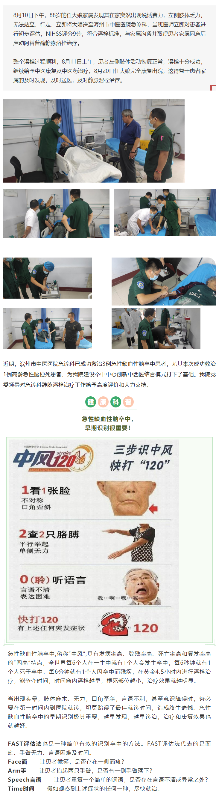 滨州市中医医院急诊科为88岁高龄脑卒中患者成功溶栓解除病症,再创生命奇迹!