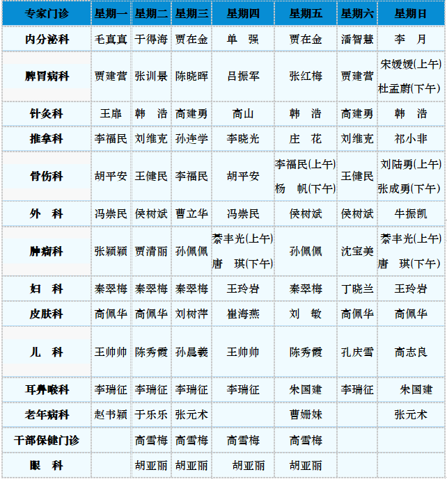中医专家门诊值班表