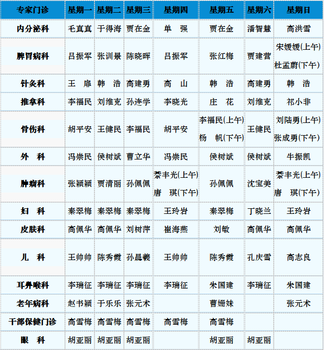 滨州市中医医院2022年9月19日-9月25日门诊值班表