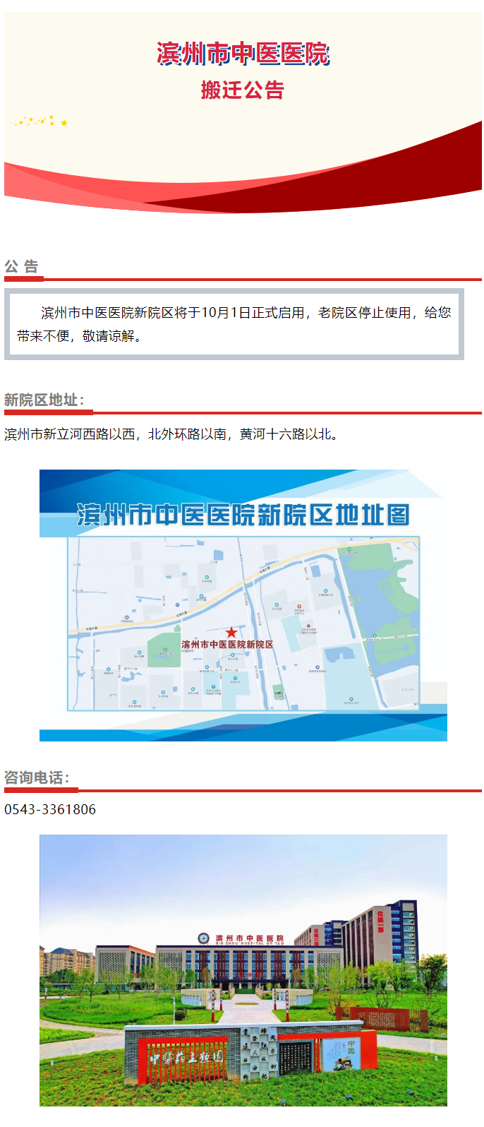 公告 | 滨州市中医医院即将乔迁新址 新院区将于10月1日正式启用
