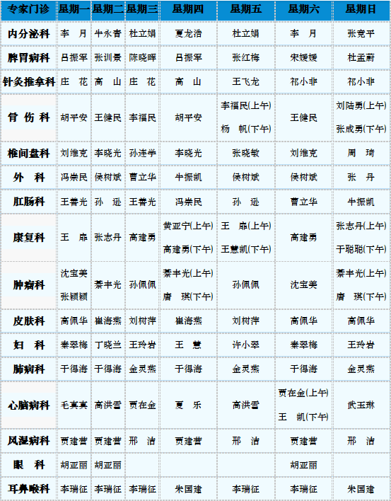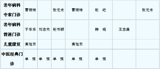 滨州市中医医院2022年10月3日-10月9日门诊值班表