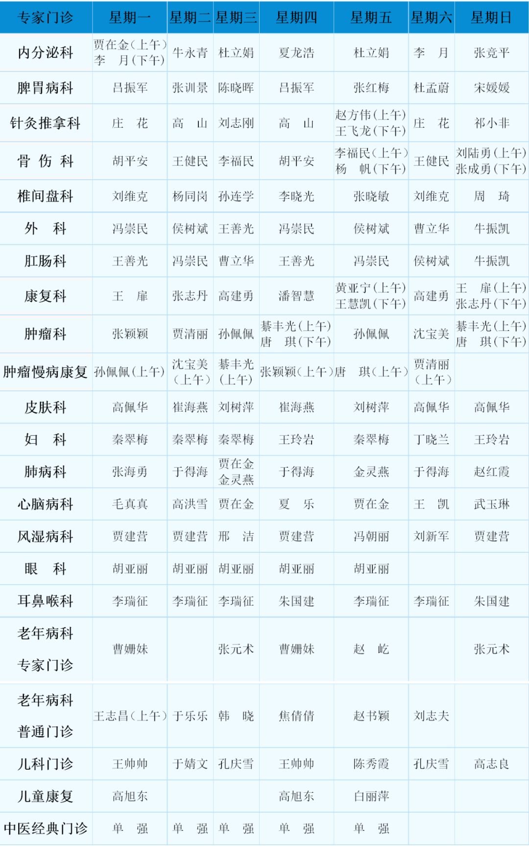 中医专家门诊值班表
