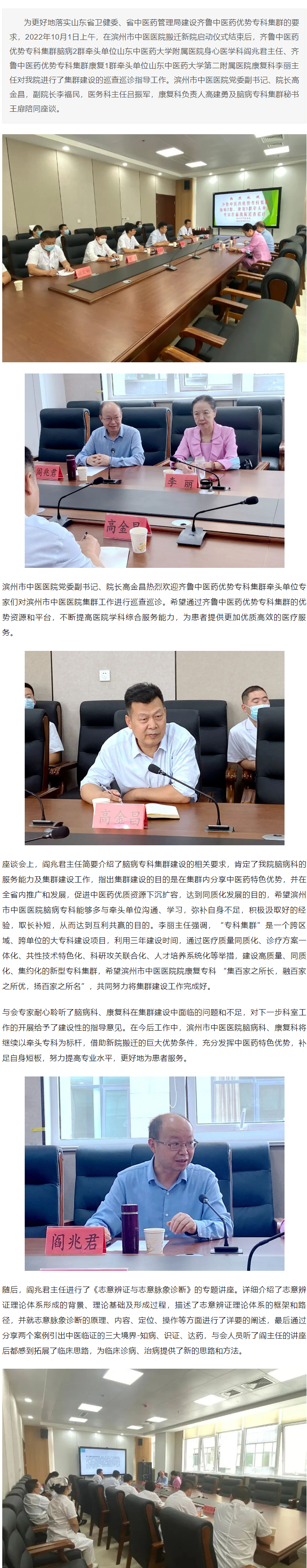 齐鲁中医药优势专科集群脑病2群、康复1群来滨州市中医医院巡查巡诊