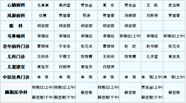 中医专家门诊值班表