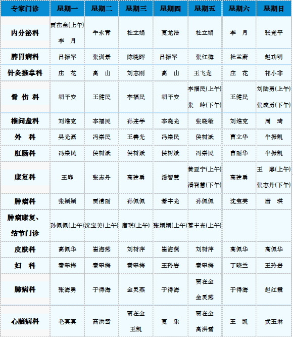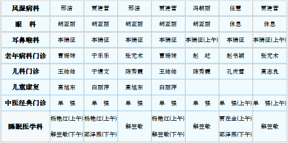 滨州市中医医院2022年11月28日-12月4日门诊值班表