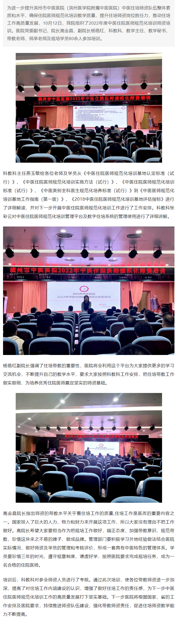 滨州市中医医院(滨州医学院附属中医医院)组织开展2022年度中医住院医师规范化培训师资培训