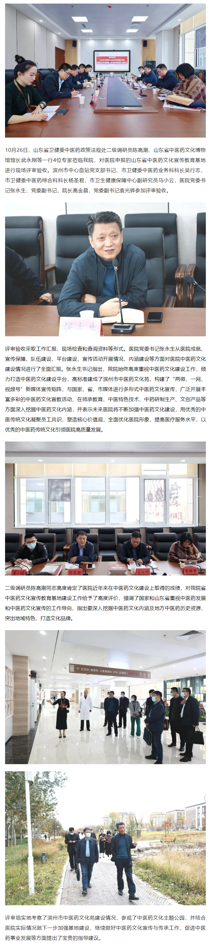 省评审组对滨州市中医医院(滨州医学院附属中医医院)山东省中医药文化宣传教育基地进行现场评审验收