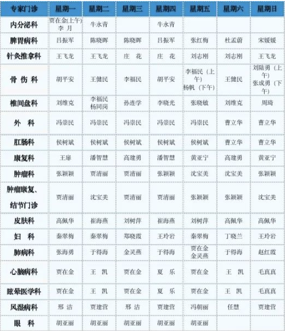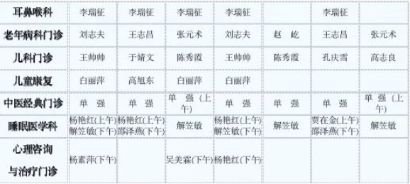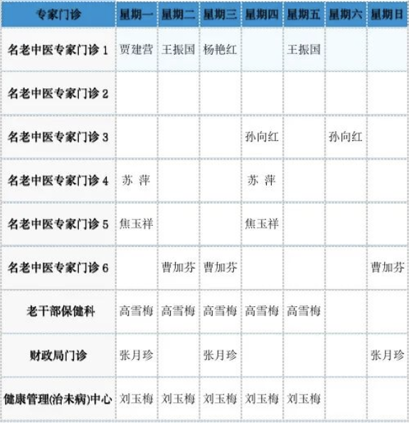中医专家门诊值班表