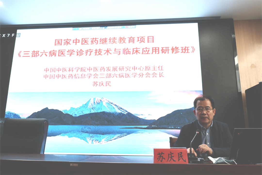 研修班由中国中医科学院中医药发展研究中心原主任、中国中医药信息学会三部六病医学分会会长苏庆民教授主持,国家中医药管理局原副局长、中国中医药信息学会会长吴刚致词。吴会长高度评价了当代名老中医药专家刘绍武先生在传承《伤寒论》基础上创立的三部六病医学体系,指出三部六病医学体系是基于中医经典的传承创新示范性学术成果,值得中医药工作者认真学习应用并广泛推广。