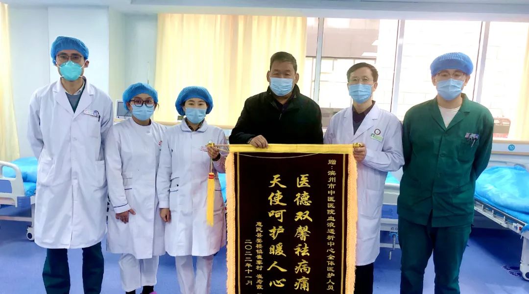 一声感谢代表着一份肯定,一面锦旗更代表着一份认可。近日,在滨州市中医医院(滨州医学院附属中医医院)血液净化中心规律透析的患者崔老师将一面绣着“医德双馨祛病痛,天使呵护暖人心”的锦旗送到了医护团队手中,高度赞扬了血液净化中心医护人员精湛的技术及细致入微的服务。