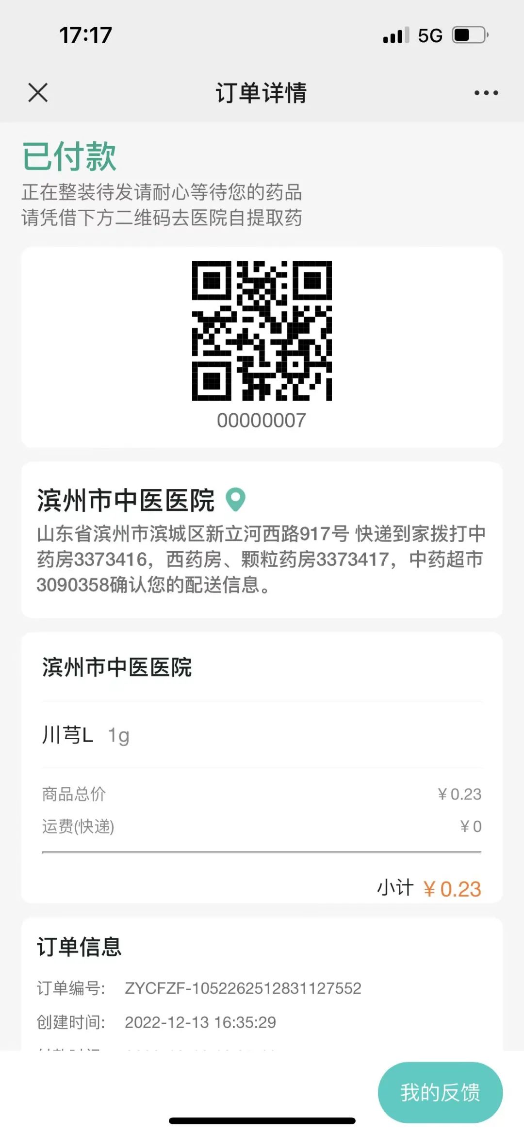 2、用取药标准二维码(如下图)到滨州市中医医院药房取药。