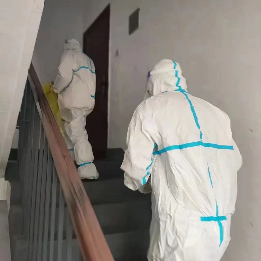 随着大巴车进入邹平市区,到达指定宾馆分配好房间后,还没有喝一口水,就接到疫情指挥部通知,要求紧急集合支援魏桥镇核酸检测工作。杨晓晓医生不顾一天工作的疲惫,再次坐上前往魏桥镇的大巴车。当到达魏桥镇时已是凌晨时分,与当地工作人员简短做完交接工作后,随即投入抗疫的战斗中。因为是入户测核酸,杨晓晓医生穿着防护服,一口气爬到六楼的时候,面罩上总是会起雾,担心看不清楚采样的位置,他会告诉自己慢一些,趴在扶梯上缓一会,争取每次采样标准到位,尽量减少被采集人员的不适感。完成采样工作已是凌晨04:30分。